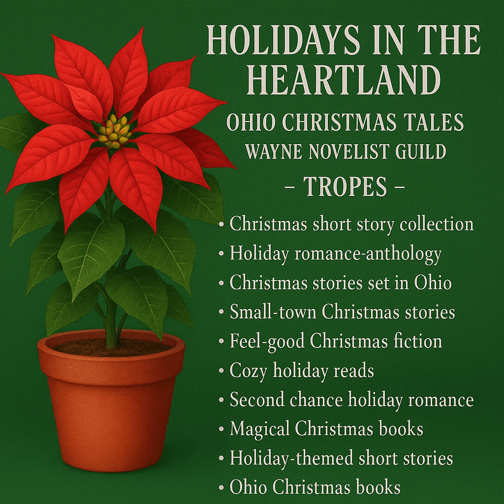 The Wayne Novelist Guild’s Holidays in the Heartland: Ohio Christmas Tales is a cheerful mix of romance, fantasy, and history — because nothing says “holiday spirit” like a little chaos, a few tears, and maybe even a ghost. Whether you’re craving mistletoe moments, second chances, eight glowing nights, or once-in-a-lifetime holiday magic, these ten stories have it all. Read one or read them all — either way, you’re in for a festive treat… Ohio style!